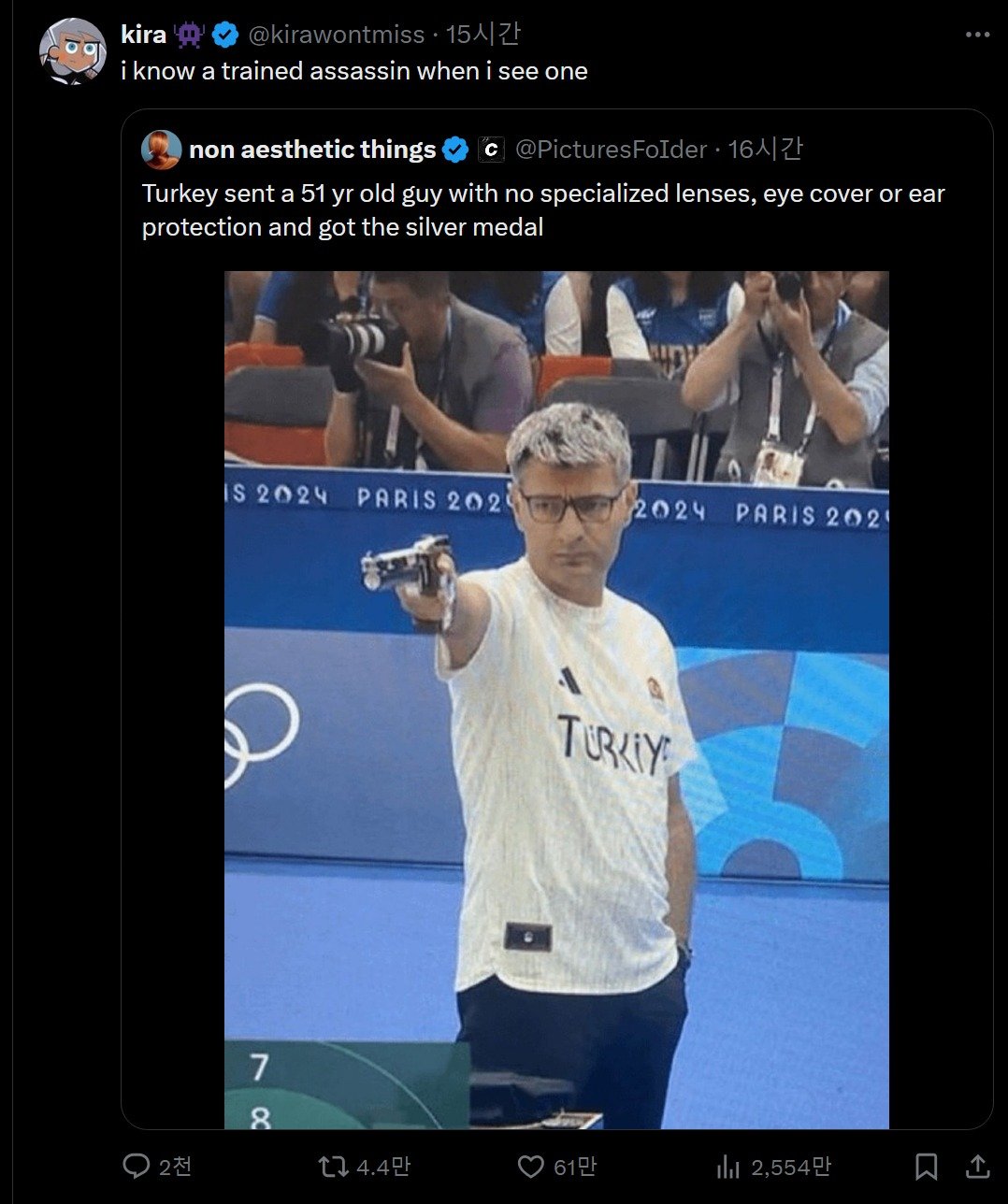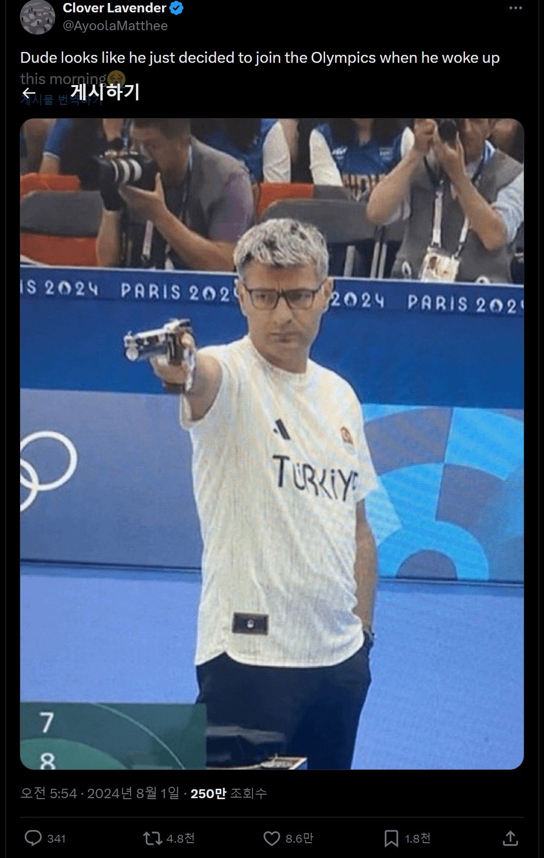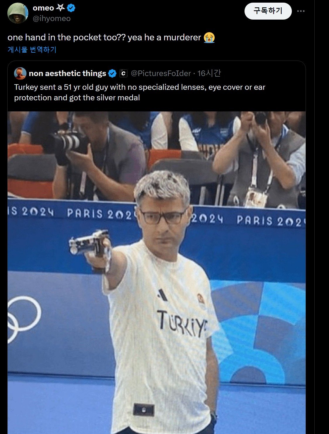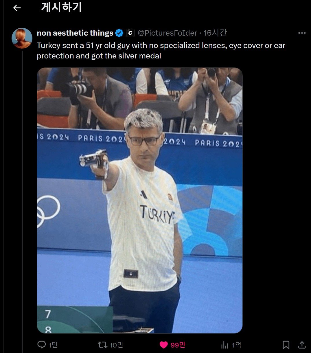 누가봐도 아침마실 나가는 복장에 이어플러그 하나만을 의지하고 나온 개상남자 터키 사격 선수 Yusuf