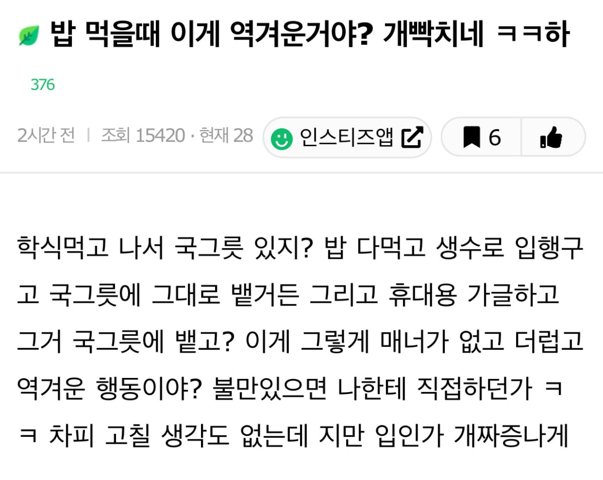 밥 먹을때 이게 역겨운거야? 개빡치네 ㅋㅋ