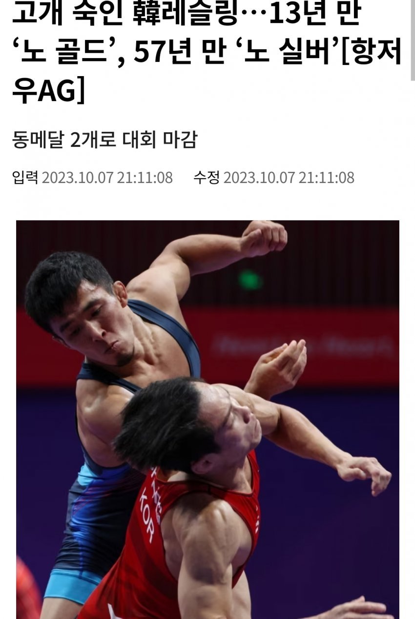 완전 망해버렸다는 한국 레슬링 근황 멧띠어디 조회수 689 2023.10.08 14:34 파리 올림픽 출전권까지 포기하고도 '역대 최악' 성적57년 만에 '노골드-노실버'…동메달 2개로 대회 마감레슬링을 배우려는 아이들이 없어요. 이러다간 올림픽은커녕 아시안게임에서도 메달을 못 따는 날이 올 겁니다." 이 지도자는 "학생들을 설득해도 소용없다"라며 "모두 훈련이 힘들고 수입도 변변치 않은 레슬링을 꺼린다"고 말했다. 레슬링 유망주 가뭄 현상은 매우 심각하다.