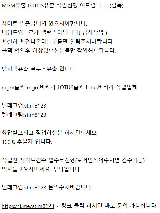 https://t.me/stim8123 ←링크 클릭 하시면 바로 문의 가능합니다.