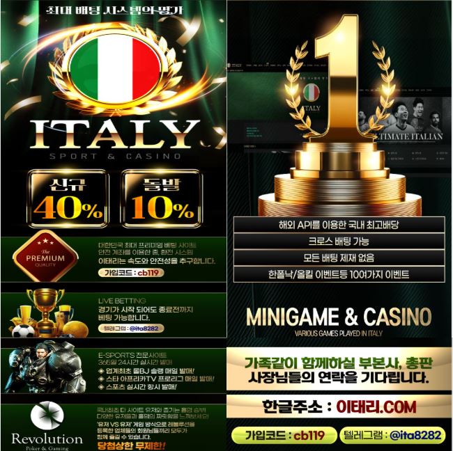(이태리) 최고 이벤트 무한혜택 첫충 매충 무사고 출금 다양한 게임 스포츠